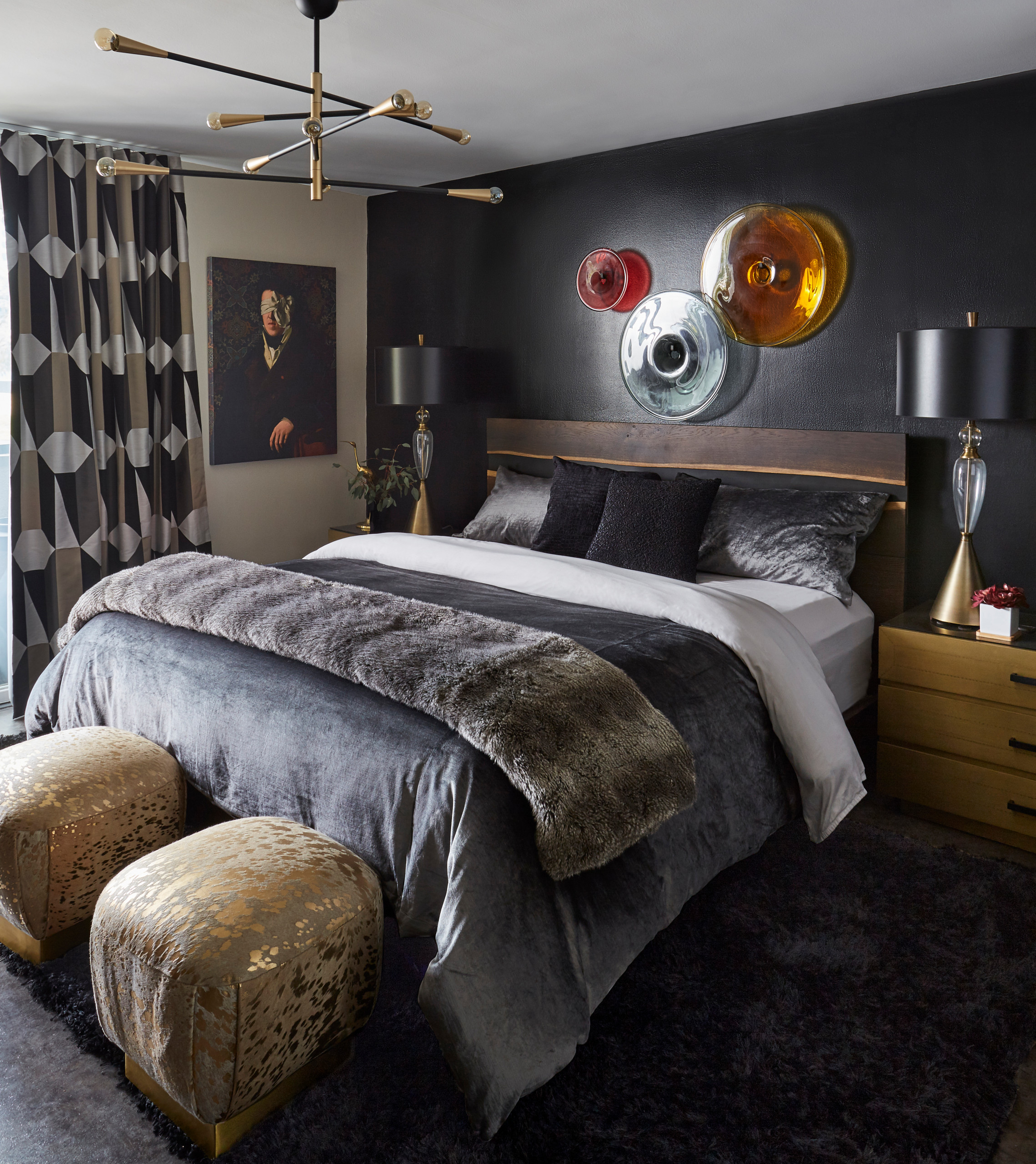 19 Amazing Glam Bedrooms With Chic Style from curatedinterior.com Like the headboard / wall. Example of a large 1960s master light wood floor bedroom design in orange county with gray walls and no fireplace. A sitting area in front of the windows makes the most of the outdoor views. Colorful mid century glam living room makeover. When styling a bedroom in the.