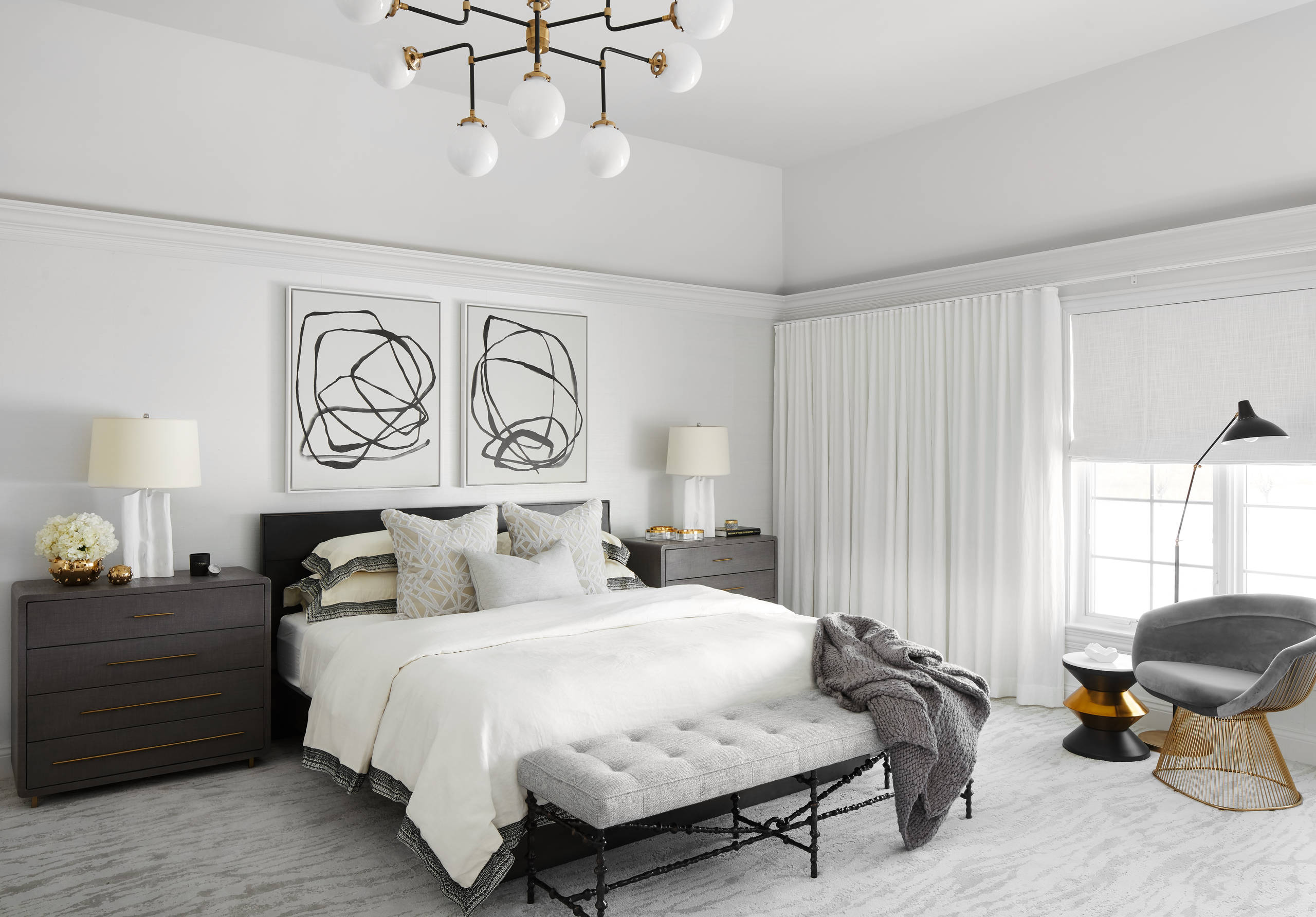 Master bedroom design ideas, tips & photos for decorating and styling a beautiful master bedroom. From modern to eclectic & traditional. Master bedroom in period house with high ceiling and square bay window.